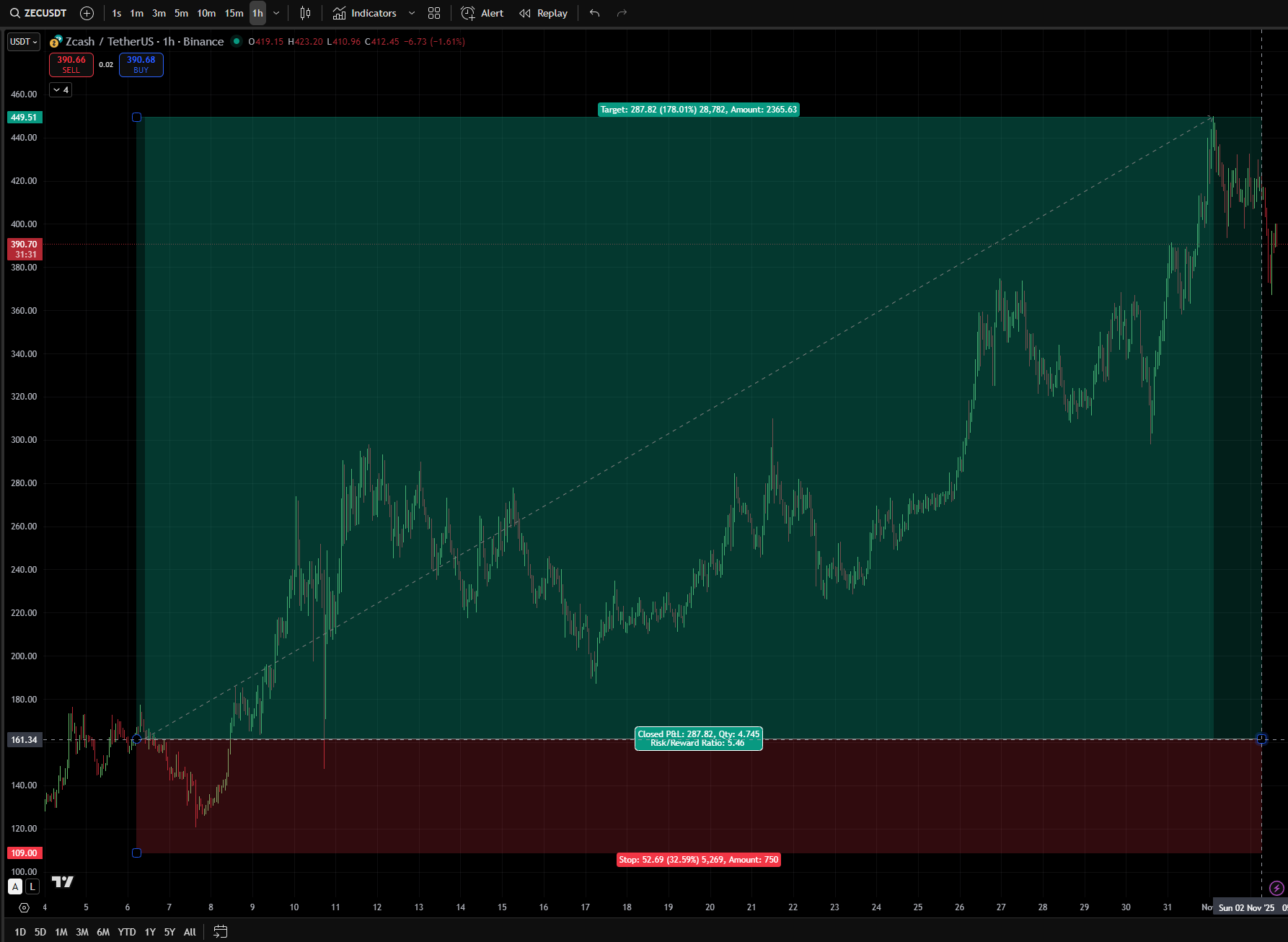 Our trade idea of long ZEC(Zcash) is now up nearly 200% since entry with minimal drawdown.