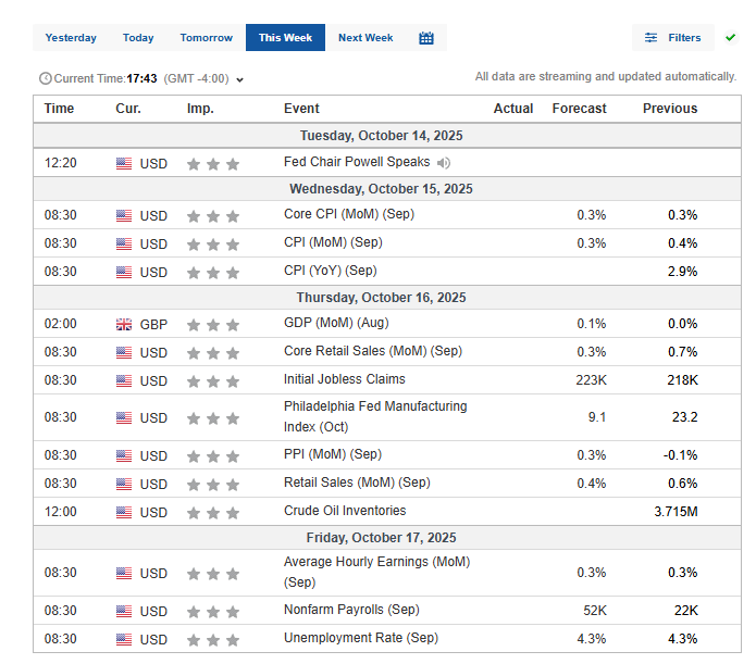 This week’s economic calendar is dense with tier-one data releases that have the potential to either validate the Federal Reserve’s dovish stance or force a hawkish reassessment. The market’s reaction function will be highly sensitive to any surprises, particularly on the inflation front. The main event of the week will be Fed Chair Powell’s scheduled speech on Tuesday, which he will likely use to reinforce the central bank’s message ahead of the late-October FOMC meeting.