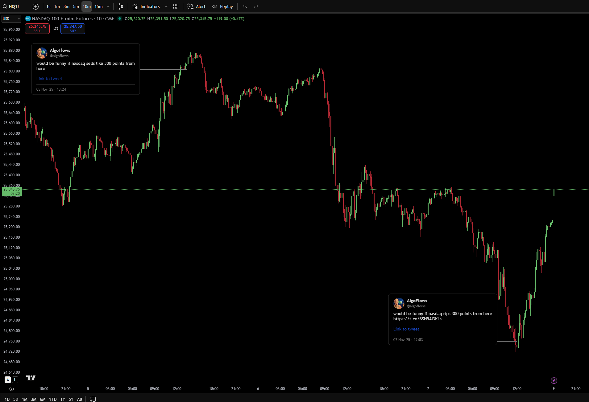 This ‘future wave’ is no longer a distant forecast. As of Sunday evening (November 9), news broke that a bipartisan deal to end the government shutdown is ‘within reach’ . According to reports, at least 10 Senate Democrats are prepared to support a procedural vote, in exchange for a future vote on ACA tax credits . This development is the primary bullish catalyst for the week, signaling the ‘present strain’ is collapsing and the ‘future wave’ of liquidity is imminent. Stock index futures (ES and NQ) reacted positively to the news, indicating the market is already pricing in this resolution .