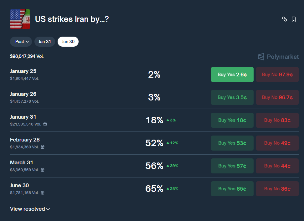 Polymarket odds of US involvement in Iran