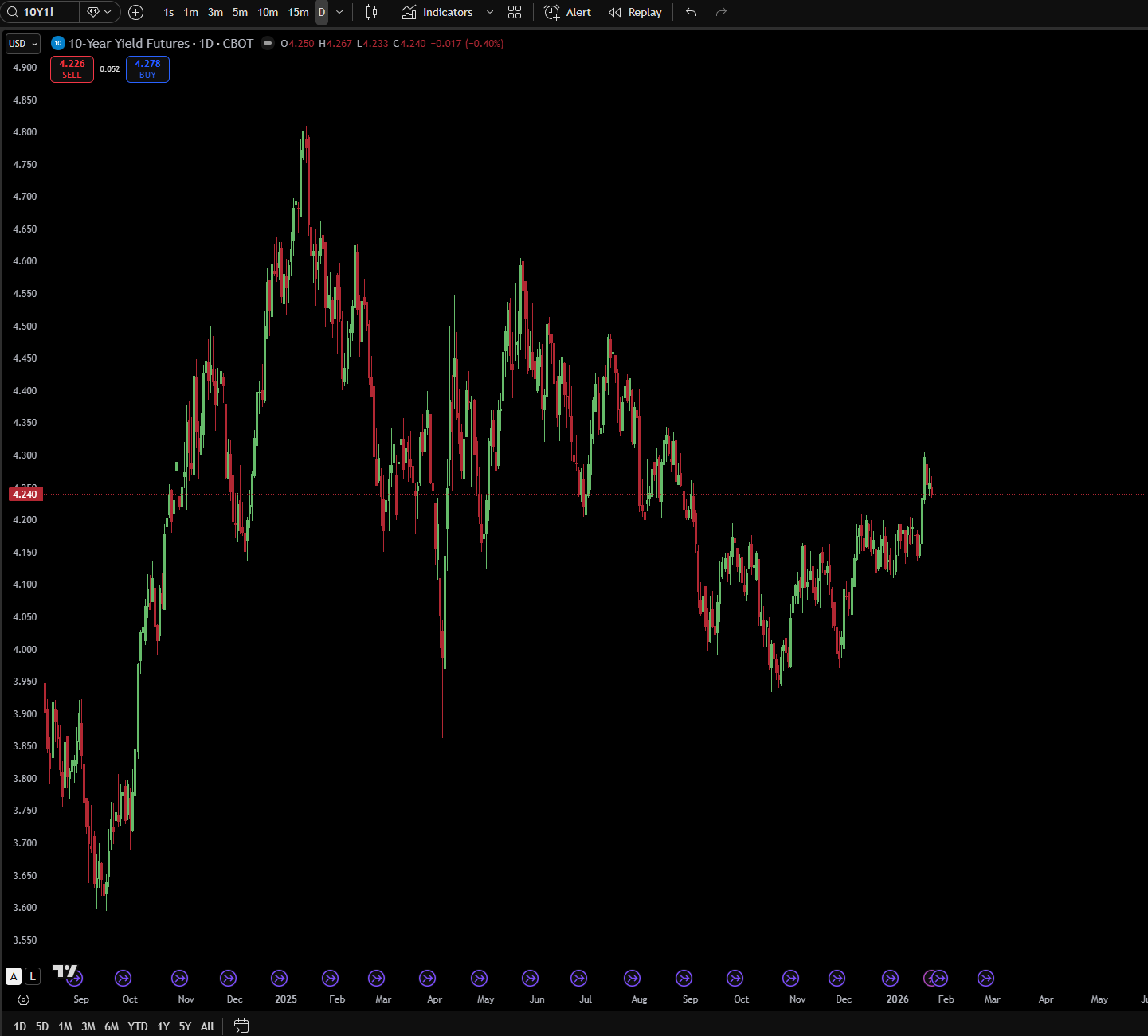 The 10-year yield has risen from approximately 4.17% two weeks ago to 4.25% as of January 23, a move that, while modest in absolute terms, reflects meaningful repricing of interest rate expectations. The January 12 Treasury auction saw the 10-year note clear at 4.173%, a sign that demand remains solid but that investors are demanding incrementally higher yields to absorb new supply.