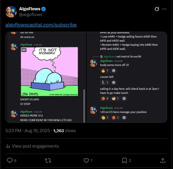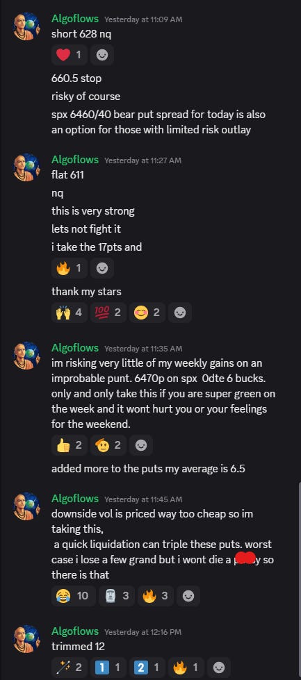 Realtime Discord access with intraday orderflow & option dealer summaries included with the paid newsletter membership . Click here to subscribe.