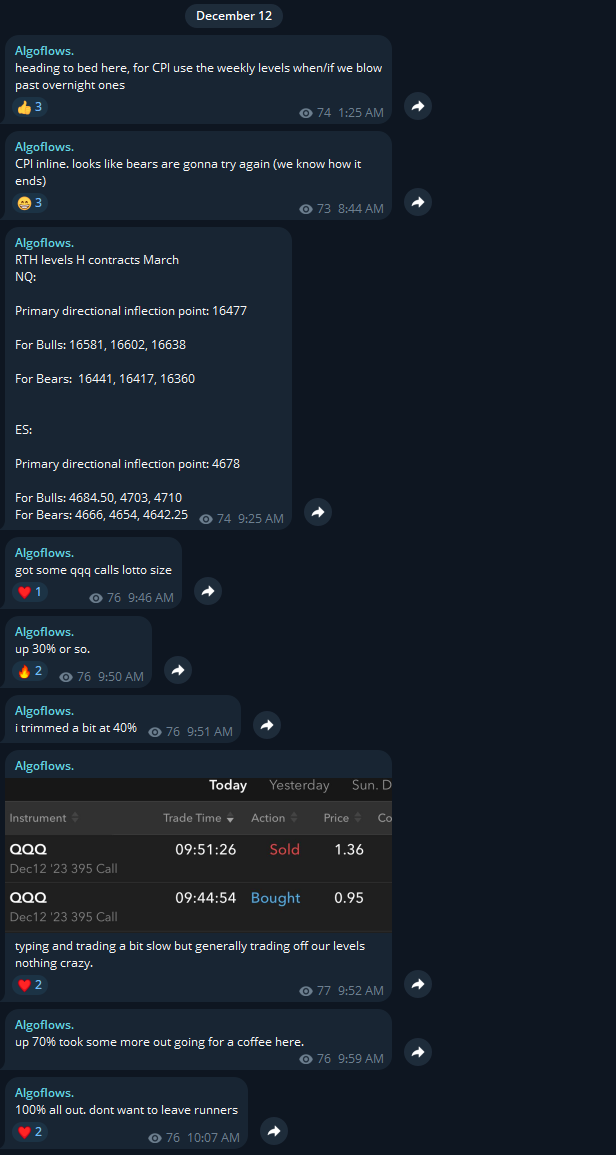 We caught the move up last week quite nicely and our levels worked pretty well and we bought the CPI dip.
