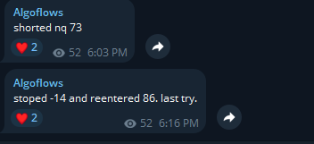 This evening I got stopped a couple times (-14 and -17) on NQ. Getting stopped out is part of the process and there is no need to hide it. Imperfection does not sell, however.