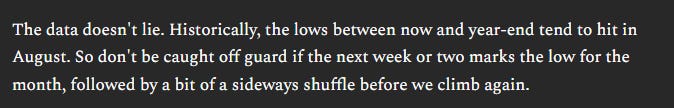 As mentioned at the start of the month, August pullbacks are common in bull-markets.